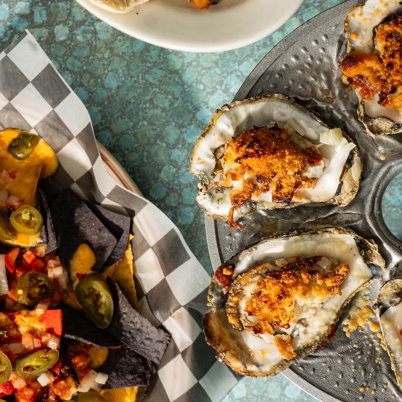 Fresh rockfish bites, perfectly battered. Excellent cauliflower pizza and you must try the oysters deadrise style!